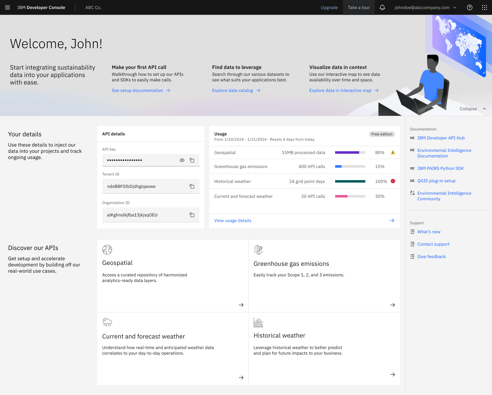 As part of strategic pivot from B2B environmental dashboards to creating a net-new API-first developer platform, I led the long-term visioning and initial end-to-end experience mapping before stepping up as design lead mid-project to support my team during restructuring. With unexpected post-launch results, I supported research in identifying a critical promise-perception gap between our marketing and the actual product experience.